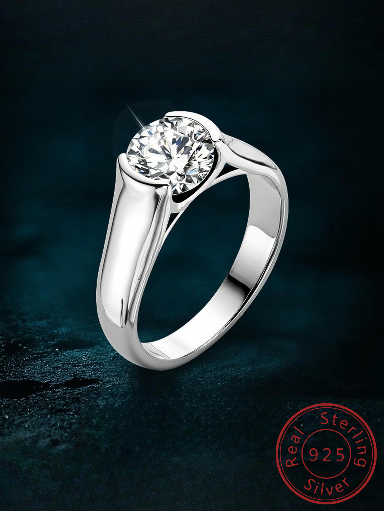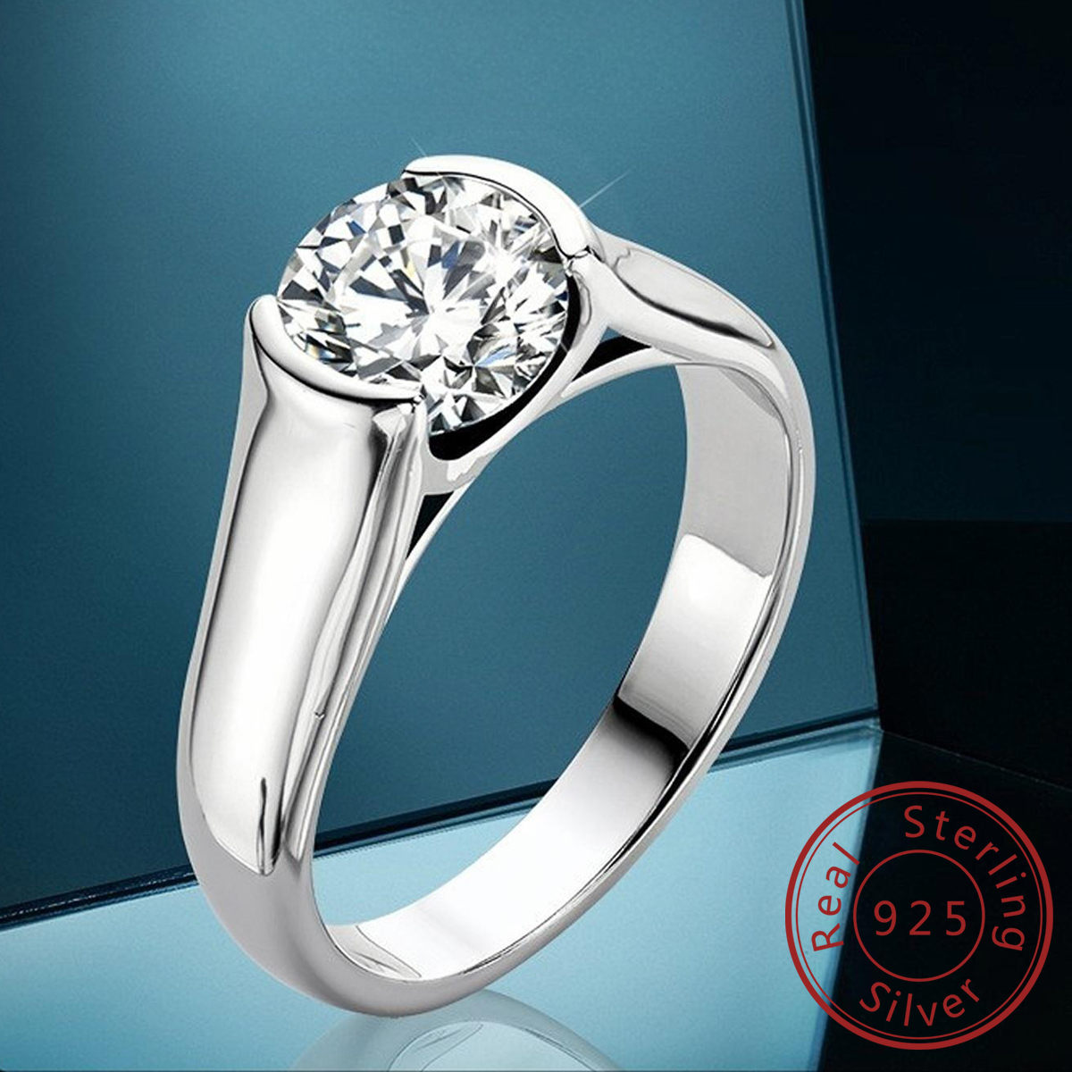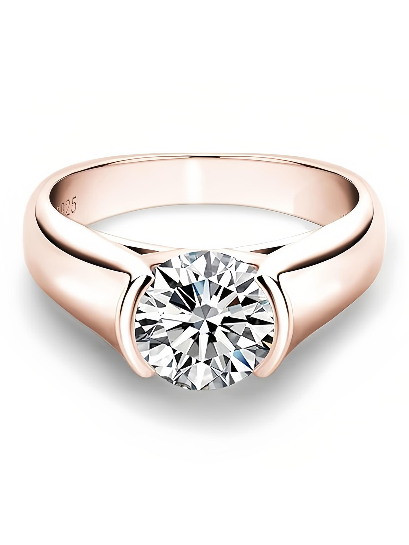 * MINIMALIST DESIGN: Scintillating 8mm, 2 carat Moissanite Secured in a half bezel setting. Excellent hearts and arrows, round brilliant cut is the best shape to reflect lights in and out. Timeless classical in beauty boost any casual or elegant formal attire, making you focus of the feast, banquet, meeting, dating, prom, party, travel, just feel confident to wear it, be ready for receive many compliments from your friends.