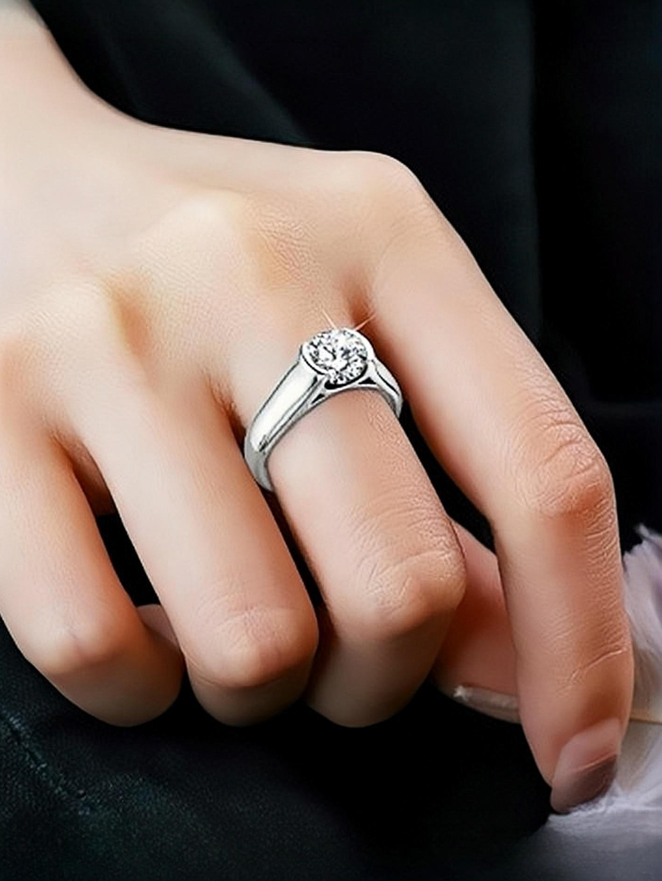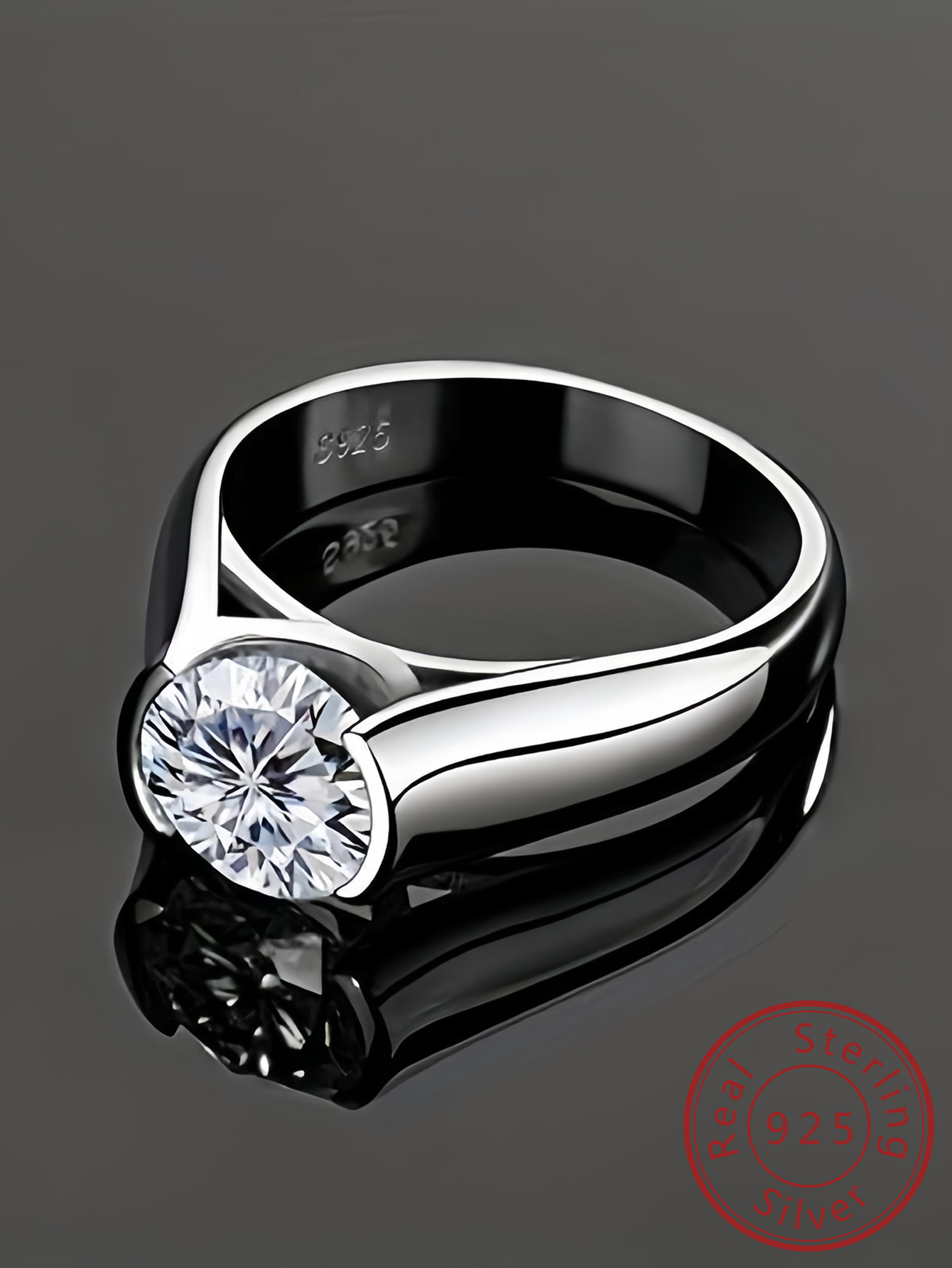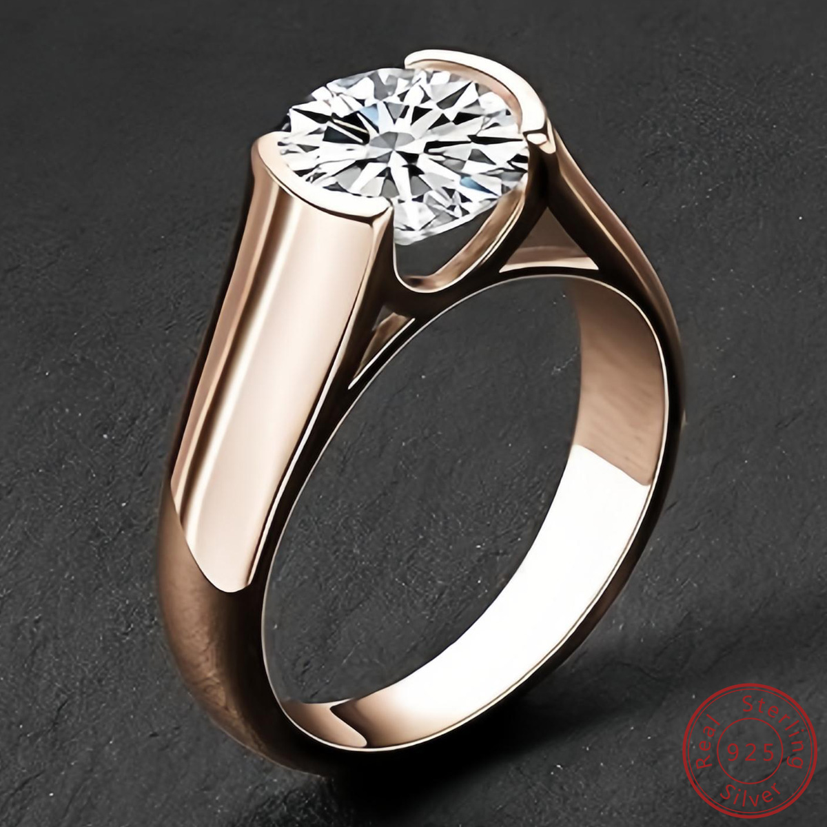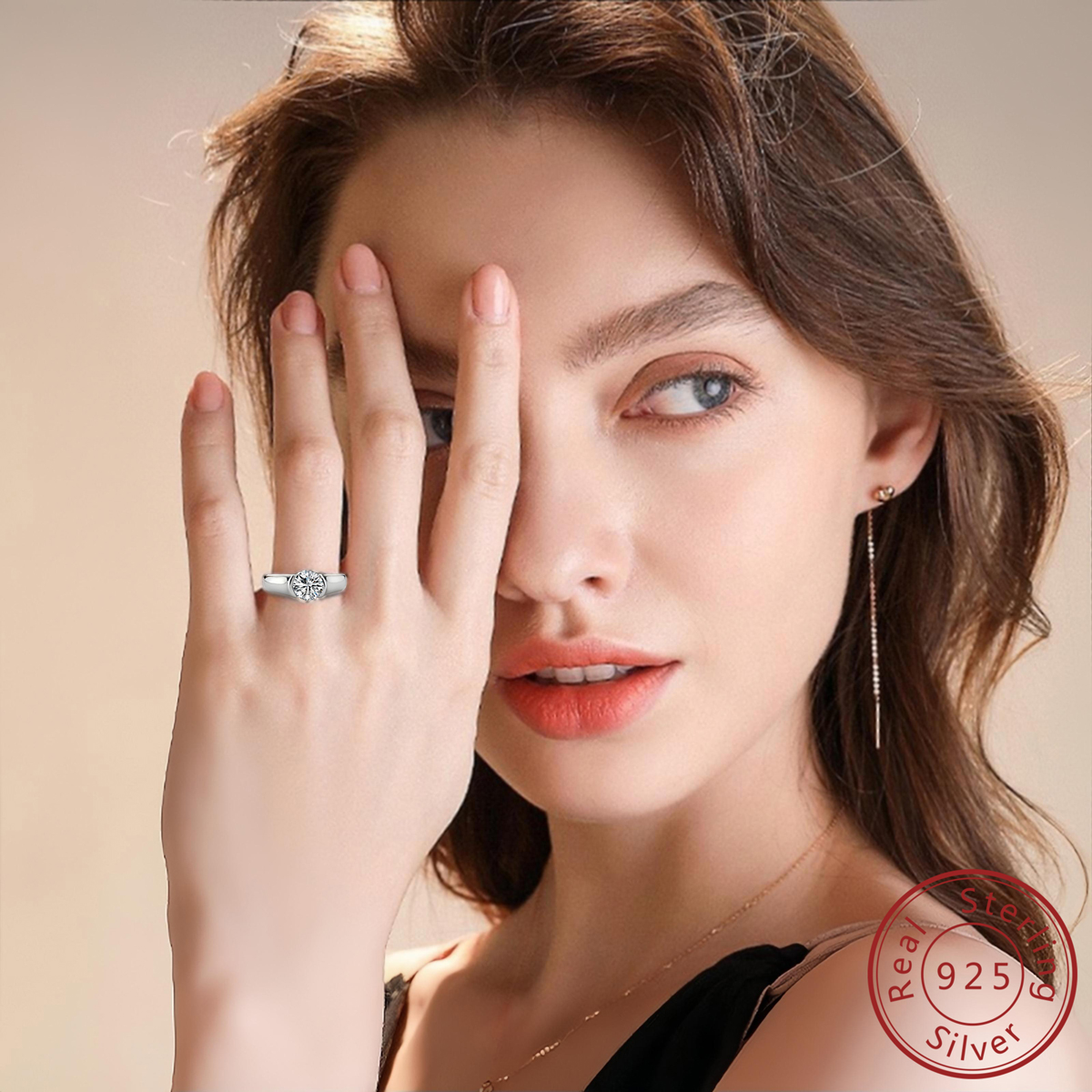 * MINIMALIST DESIGN: Scintillating 8mm, 2 carat Moissanite Secured in a half bezel setting. Excellent hearts and arrows, round brilliant cut is the best shape to reflect lights in and out. Timeless classical in beauty boost any casual or elegant formal attire, making you focus of the feast, banquet, meeting, dating, prom, party, travel, just feel confident to wear it, be ready for receive many compliments from your friends.