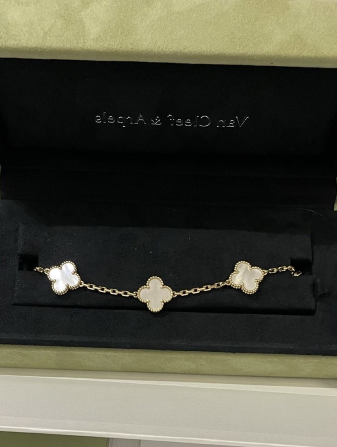 VCA White Fritillaria Clover Bracelet with White Gold Five Flowers
